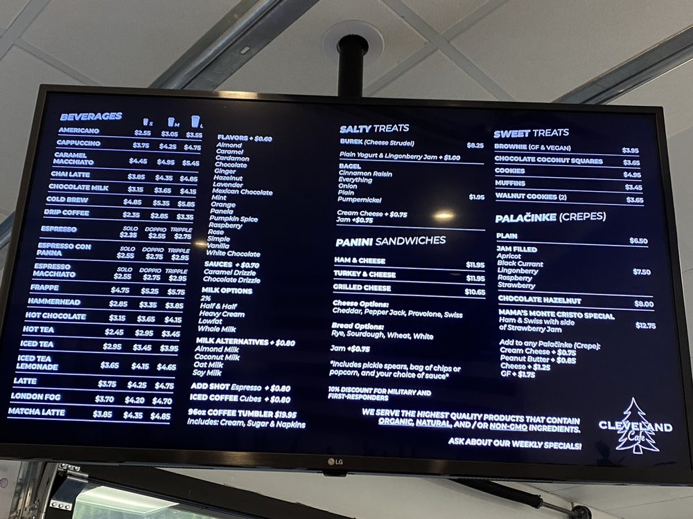 With amenities like free Wi-Fi, outdoor seating (including heated and covered options), and even an EV charging station available, Cleveland Cafe goes above and beyond to cater to their customers' needs. Whether you're looking for a quick stop for coffee or a leisurely meal with friends, Cleveland Cafe is a delightful destination that will leave you planning your next visit.
